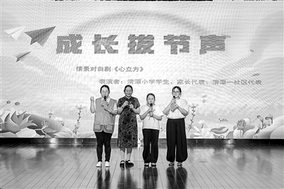 在常州市鐘樓區(qū)2025年心理健康活動月主題活動中,學生、家長和社工代表共同表演情景劇。盛佳妮 攝