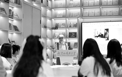 6月17日,魏立中(后)為北京外國語大學(xué)的師生講授木版水印的歷史源流與特色。