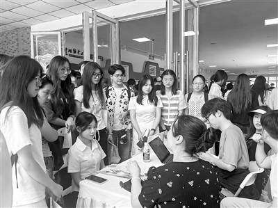 本報訊(記者 葛仁鑫)近日,成都大學(xué)環(huán)境工程專業(yè)大二學(xué)生程欣潔整理好團隊介紹、招聘需求,來到學(xué)生活動中心;同時,該校材料科學(xué)與工程專業(yè)大二學(xué)生唐銘霞也帶著簡歷,來到現(xiàn)場。她們都是參加同一場“雙選會”,不同的是,程欣潔是“帶項目找人”,“希望找到合適的同學(xué)一起做創(chuàng)新創(chuàng)業(yè)項目”,而唐銘霞是“人找項目”,“希望通過參與項目進一步提升自己?!?/p>