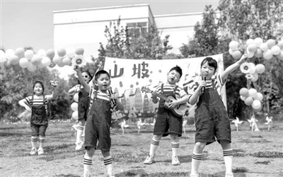 幼兒舉辦“山坡音樂會”。幼兒園供圖