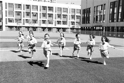 濟(jì)南高新區(qū)正博小學(xué),孩子們?cè)诓賵?chǎng)上奔跑,活力滿滿。學(xué)校供圖
