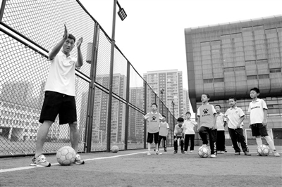 6月22日,盧志勇(左一)指導(dǎo)校隊(duì)球員進(jìn)行訓(xùn)練。