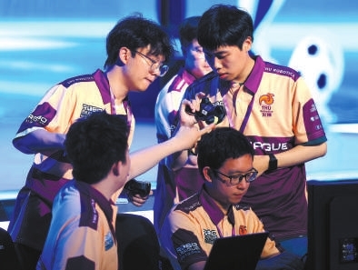 6月28日,清華火神隊與中國農(nóng)業(yè)大學山海隊的機器人選手在比賽中。