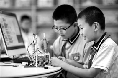 近日,甘肅省張掖市甘州區(qū)思源實(shí)驗(yàn)學(xué)校學(xué)生在學(xué)習(xí)智能制造。楊瀟 攝