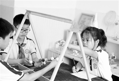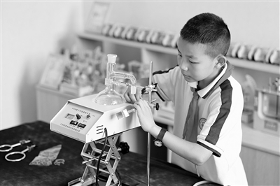 桐琴鎮(zhèn)中心小學的“一平方米”實驗室把科學實驗的主人公地位交還給學生。圖為學生在實驗室中自主安裝酒精蒸餾裝置。 學校供圖