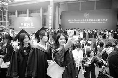 6月28日,重慶大學(xué)2025年畢業(yè)典禮暨學(xué)位授予儀式現(xiàn)場(chǎng),學(xué)生合影留念。當(dāng)天,該校1.5萬(wàn)名畢業(yè)生懷揣對(duì)未來(lái)的憧憬和期望,即將踏上人生新的征程。重慶大學(xué)校長(zhǎng)王樹新以“堅(jiān)韌”為題,為全體畢業(yè)生帶來(lái)一堂“青春揚(yáng)帆新時(shí)代”的畢業(yè)課程。
