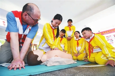 近日,貴州省貴陽市南明區(qū)紅十字會(huì)急救培訓(xùn)師在南明小學(xué)對學(xué)生進(jìn)行心肺復(fù)蘇急救培訓(xùn)。趙松 攝