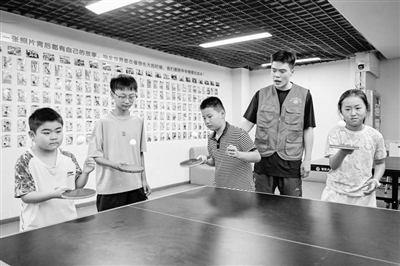 孩子們?cè)趯W(xué)習(xí)打乒乓球。