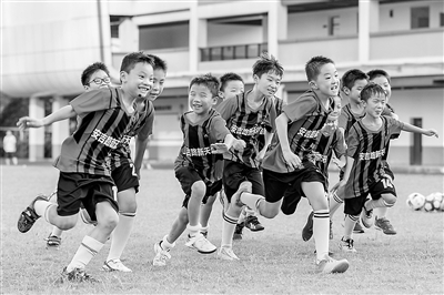 ①浙江省杭州市安吉路教育集團(tuán)學(xué)生在踢足球。