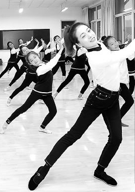 山東省壽光世紀(jì)教育集團(tuán)舞蹈社團(tuán)的學(xué)生在訓(xùn)練。