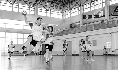 ②琿春市第一小學(xué)手球隊的隊員在進行日常訓(xùn)練。 王浩 攝