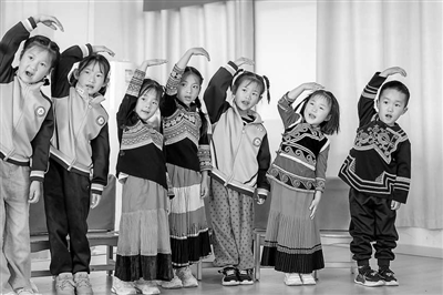 圖②:雷波縣金沙鎮(zhèn)幼兒園的孩子們歡唱兒歌。劉磊 攝