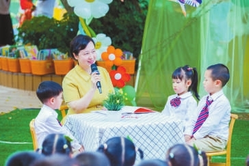 所謂“實習(xí)場”,就是模擬真實生活場景,讓孩子們在實踐中學(xué)習(xí)社會交往、解決問題。李淑賢和團隊開發(fā)了社會教育資源包,涵蓋角色扮演、社區(qū)實踐等豐富內(nèi)容,并總結(jié)出“一看二講三做四思”的學(xué)習(xí)模式,創(chuàng)建“閱讀節(jié)”“逛廟會”“故事擂臺”等新活動樣態(tài),有效促進了幼兒全面發(fā)展。