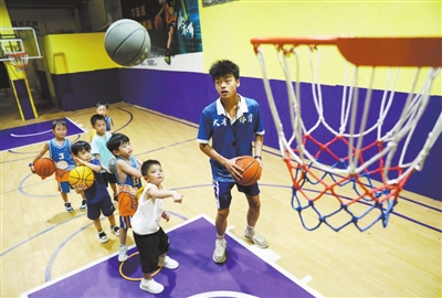 暑假期間,孩子們通過(guò)參加籃球等運(yùn)動(dòng)項(xiàng)目,強(qiáng)身健體、充實(shí)假期。