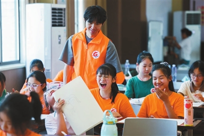 7月23日,志愿者在西山社區(qū)黨群服務(wù)中心的暑期愛(ài)心教室輔導(dǎo)孩子們畫(huà)畫(huà)。暑假期間,浙江省嘉興海寧市硤石街道西山社區(qū)黨群服務(wù)中心開(kāi)啟暑期“愛(ài)心教室”,課程包括繪畫(huà)、書(shū)法、閱讀、手工和作業(yè)輔導(dǎo)等。150余名幼兒園及小學(xué)的孩子由大學(xué)生志愿者和社工陪伴,開(kāi)啟為期45天的暑期成長(zhǎng)之旅。 新華社記者 徐昱 攝