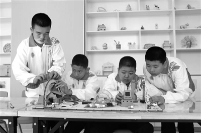 ①康巴什區(qū)第一中學(xué)學(xué)生在科創(chuàng)教室中研究低碳環(huán)保裝置。