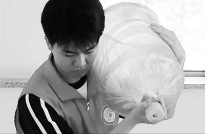 當(dāng)日,王俊杰往社區(qū)所在樓層扛桶裝水。