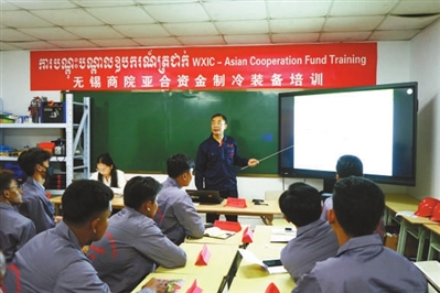 ①無(wú)錫商業(yè)職業(yè)技術(shù)學(xué)院教師在西哈努克港工商學(xué)院開展技能培訓(xùn)。