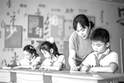 學(xué)校教師在指導(dǎo)學(xué)生規(guī)范寫字。學(xué)校供圖