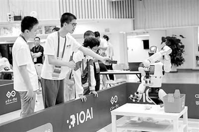 選手化身人工智能(AI)工程師,通過(guò)編程操控一米多高的人形機(jī)器人,精準(zhǔn)抓取桌面上的4樣物品放入籃筐,隨后避開重重障礙,將籃筐運(yùn)送至貨架。這是第二屆國(guó)際人工智能奧林匹克學(xué)術(shù)活動(dòng)(IOAI)現(xiàn)場(chǎng)的一幕。