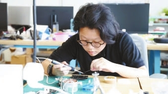香港科技大學(xué)(廣州)紅鳥碩士班一期學(xué)生蔡嘉雯正在設(shè)計(jì)創(chuàng)新產(chǎn)品。本報(bào)記者 李柯 攝