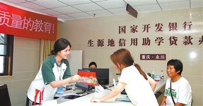 8月18日,在重慶市永川區(qū)教委學(xué)資與衛(wèi)保中心,一位準(zhǔn)大學(xué)生在家長的陪同下前來辦理生源地信用助學(xué)貸款業(yè)務(wù)。陳仕川 張玲 攝