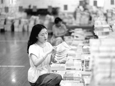 8月16日,在江蘇省興化市景范學(xué)校,工作人員清點(diǎn)整理新學(xué)期教材。 周社根 攝