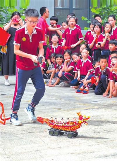 廣東省佛山市禪城區(qū)瀾石小學(xué)STEM課程開(kāi)展彩泥龍舟障礙競(jìng)速賽。學(xué)校供圖