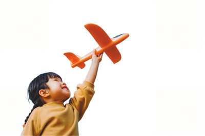 女孩在玩飛機(jī)玩具。 視覺(jué)中國(guó)供圖