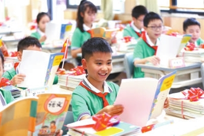 四川省樂山市翡翠實驗學(xué)校學(xué)生正在教室朗讀新書本內(nèi)容。李華 時 攝