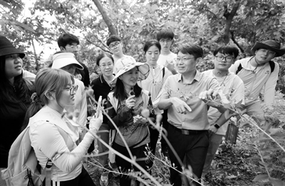 山東中醫(yī)藥大學(xué)藥學(xué)院師生在采集黃芪標(biāo)本。