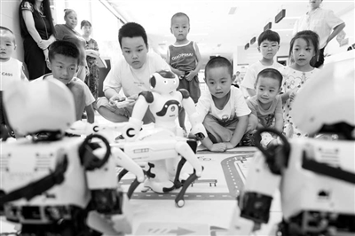 近日,在重慶市北碚區(qū)水土街道和澤家園社區(qū)微型少年宮,孩子們?cè)诤蜋C(jī)器人互動(dòng)。秦廷富 攝