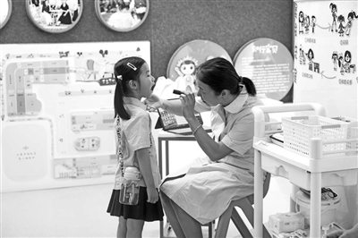 開(kāi)學(xué)了,保健醫(yī)生在給孩子檢查口腔。季惠忠 供圖