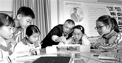 東莞松山湖中心小學(xué)學(xué)生在教師的帶領(lǐng)下探究梁橋的秘密。學(xué)校供圖