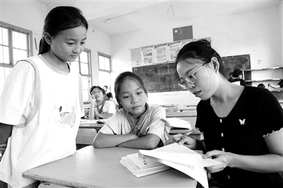 湖南省保靖縣特崗教師在給學(xué)生講解作業(yè)。 俞采華 攝 (資料圖片)