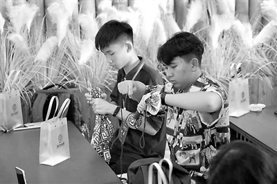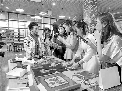 東盟國家職業(yè)教育來華留學(xué)生體驗中國文化。圖①為學(xué)生在體驗壯族刺繡。圖②為學(xué)生在制作五子養(yǎng)生錘。圖③為學(xué)生在練習(xí)仿宋點茶。