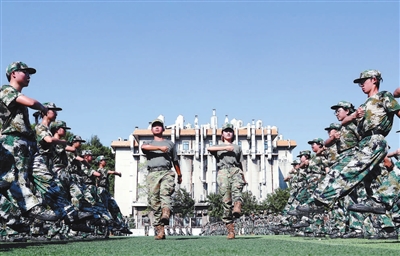 9月15日,湖南省衡陽市,南華大學(xué)2025級(jí)新生在學(xué)校田徑運(yùn)動(dòng)場進(jìn)行正步走項(xiàng)目的訓(xùn)練。新學(xué)期開始,該校面向2025級(jí)新生開展為期兩周的軍訓(xùn),以此引導(dǎo)新生增強(qiáng)國防觀念,厚植愛國情懷。曹正平 攝