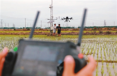 在江蘇鎮(zhèn)江新區(qū)永興農(nóng)機(jī)機(jī)械化專業(yè)合作社,江蘇大學(xué)農(nóng)業(yè)工程學(xué)院師生利用低空無人機(jī)采集大田信息。