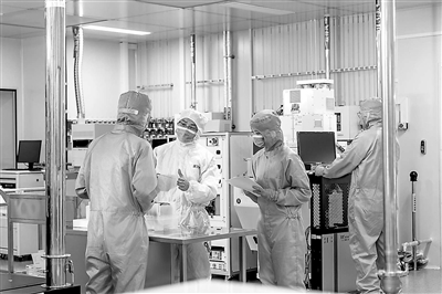 電子科技大學(xué)集成電路科學(xué)與工程學(xué)院(示范性微電子學(xué)院)院長張萬里(左二)在指導(dǎo)學(xué)生做實驗。學(xué)校供圖