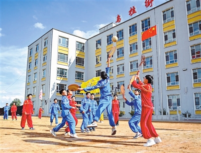 9月16日,吉林省吉林市烏拉街滿族中學(xué)學(xué)生在操場上進行珍珠球比賽。入選國家級非物質(zhì)文化遺產(chǎn)的特色體育運動珍珠球源于東北地區(qū)的采珠活動。烏拉街滿族中學(xué)作為珍珠球傳承教學(xué)基地,將這項運動納入必修課程。