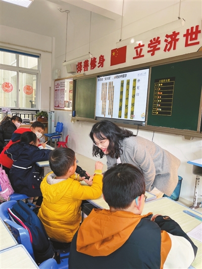 安徽大學(xué)教師白琳為合肥一六八玫瑰園學(xué)校小學(xué)一年級學(xué)生授課。