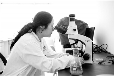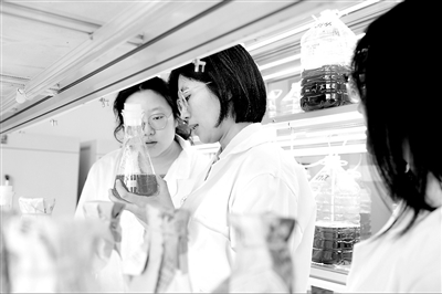 學生在教師趙璐的指導下進行微藻實驗。 學校供圖