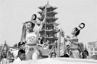 學(xué)生表演舞蹈“絲路明珠”。