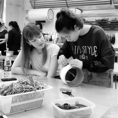 湖南師范大學(xué)美術(shù)學(xué)院學(xué)生(右)與法國大學(xué)生共同參與設(shè)計(jì)工作坊。 湖南師范大學(xué)供圖