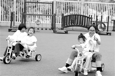 孩子們騎著從“租車(chē)行”租來(lái)的車(chē)在幼兒園穿行。 王名瀟 供圖