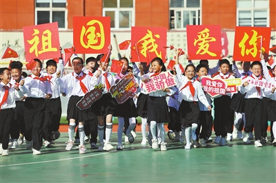 近日,山東省臨沂市沂南縣第三實驗小學(xué)學(xué)生為祖國獻(xiàn)上祝福。