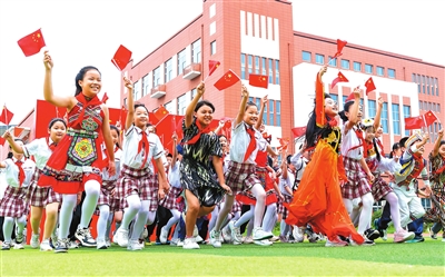9月29日,江蘇省海安經(jīng)濟(jì)開發(fā)區(qū)實(shí)驗(yàn)小學(xué)開展“祝福祖國 喜迎國慶”主題教育活動,學(xué)生們通過演唱紅色歌曲、學(xué)習(xí)國旗知識、與國旗合影等多彩活動,表達(dá)對祖國的美好祝愿,慶祝新中國成立76周年。翟慧勇 攝