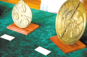 清華大學(xué)科學(xué)博物館志愿者楊明繁正在為記者們講解星盤。
