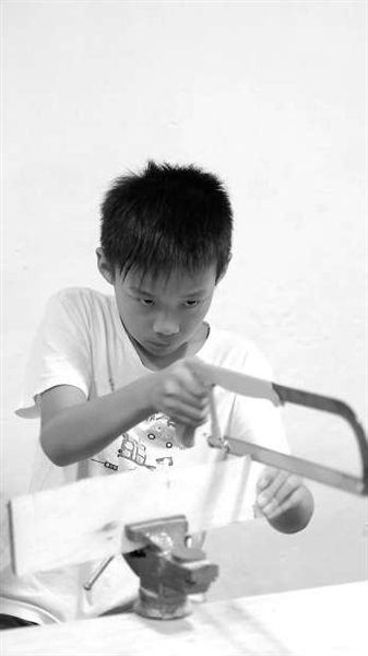 圖① 四川省廣元市利州區(qū)范家小學學生在做木工。
