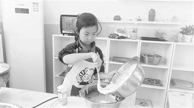 圖③ 四川省廣元市利州區(qū)范家小學學生在制作蛋糕。 學校供圖